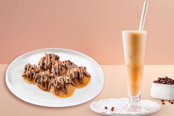 Cold Coffee served with 6pcs of Brownie Brittle Pancakes — the perfect contrast of smooth, chilled brew and crispy-chewy brownie richness. A match made for caffeine-loving chocoholics!